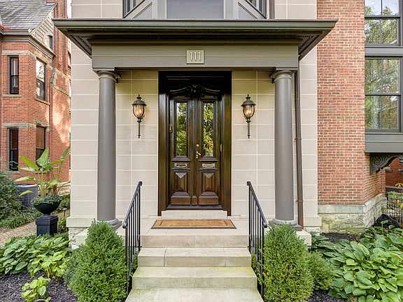 Rare newer home with idyllic location overlooking Schiller Park with fabulous views of the pond. Current homeowners have completely renovated the main house and three car carriage house. Grand entrance with switchback stairs featuring banks of beautiful clear leaded glass windows. All new hardwood floors throughout first floor, all new laundry which doubles as a wet bar for entertaining. First floor master suite completely reworked and richly paneled library/media room both with French doors leading to large covered back patio. Second floor living space is very open with oversized wood burning fireplace with gas logs, dining room with stunning light fixture, all new white kitchen with SS appliances, granite counters, butler's pantry and eating bar. Second master suite on 3rd floor w/ new hardwood, two huge walk-in closets, soaking tub, walk-in shower & skylight.The large private two-tiered fenced yard has been re-landscaped with new lighting, plantings, hardscape and walkways. 3-car carriage house w/ all new studio apartment or guest suite. Highest level of finish & attention to detail throughout.