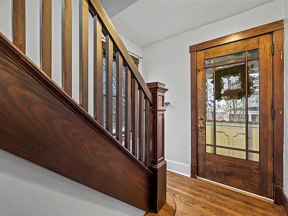 Excellent Shaler township 2 bed room 2 full bath brick home in a super convenient location just off Mt Royal Blvd. You are welcomed with a covered front porch & swing! The home has lots of original woodwork & amazing refinished dark hardwood flooring through both levels too carry on the charm! The main level has a beautiful entry & staircase opening to the living room featuring a gas fireplace & stained glass windows. French doors open to the den ! The dining room & kitchen round out the main level. The upper level has two very spacious bedrooms one with a wall to wall storage and a updated full bath. The lower level has been partially finished and has a completely remodeled full bathroom. With some flooring & and your own finishing touches this could be an amazing game room space! Outside you have a fended yard, off street parking pad and 2 car garage with 100 amp sub panel that would make the perfect workshop or crafters dream space! Minutes to Route 8 , & easy commute to downtown!
