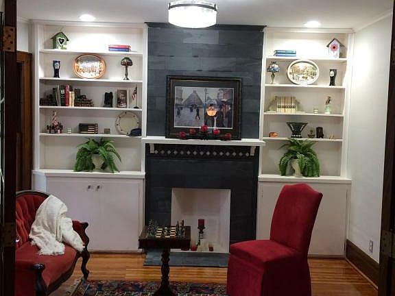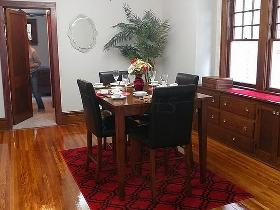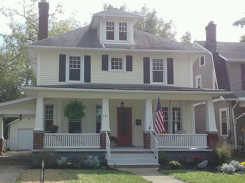 Charming Craftsman style, ca 1918. 10 x 18 deck overlooking large natural wooded ravine in backyard. Completely restored w/original HW floors & decorative slate FP. All new lighting thruout. Five BRS w/all-new carpeting, 1st floor MBR ste w/heated bath floor & double bowl Victorian Vanity. MBR W/private exterior entrance off of back deck. NEW open kitchen w/new Corian counters, island, SS appliances, gas stove, eye-catching & beautiful backsplash. Upstairs bath completely remodeled w/new tub, shower, toilet, vanity,subway tile & floor. Main Floor 1/2 bath completely new w/all new fixtures, except the historic sconces. All knob & tube wiring has been replaced with code wiring! The turn-of-the-century carriage house and carriage port adds to the charm of Main Street living!