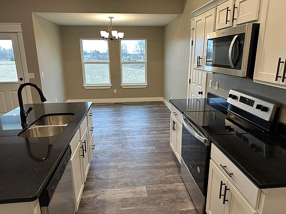 New3 car garage split bedroom plan home with vinyl plank flooring in the kitchen and living areas, large kitchen island, granite countertops, walk-in pantry, raised ceilings, covered patio and landscaping. More new homes available in this subdivision.