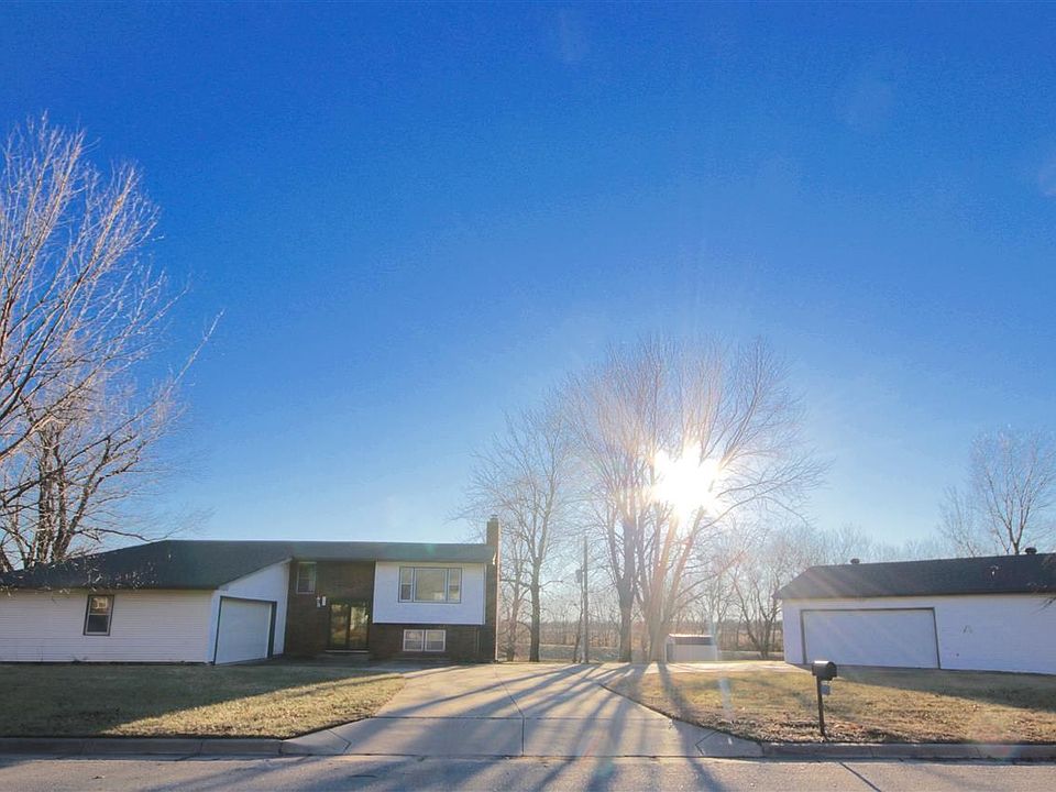 LOOKING FOR A SMALL TOWN FEEL AND THE CONVENIENCE OF THE CITY, THIS ONE IS FOR YOU! 4+ CAR garage, tons of storage, 25 minutes from downtown Wichita. Well kept 4 bedroom 3 bath with large shaded yard located on over half acre lot offering you plenty of privacy. Have toys or hobbies, the detached garage offers plenty of storage and space. It is well insulated and heated with its own half bath, large stainless sink so the possibilities for this space are limited only to your imagination. The in floor sump and independent water heater will allow you to to keep your vehicles clean even on the coldest days. Open floor plan with updated kitchen and baths. Actual hardwood oak cabinets in kitchen offer a quality, hard to find in most homes. Off the dinning area you have a nice 10 by 12 wooden deck allowing you to enjoy the uninterrupted view of the countryside. Pellet wood stove and wet bar in downstairs family room would be great for entertaining or enjoying a quiet evening. Front load washer and dryer stay with the house. Larger office space offers plenty of storage and work space, could work for a playroom for the kids. Attached garage offers plenty of in ceiling storage. Roof replaced last summer on both the house and garage. Furnace is equipped with built in humidifier, to stay not only warm, but comfortable in the winter. Full disclosure: seller is relative of listing agent.