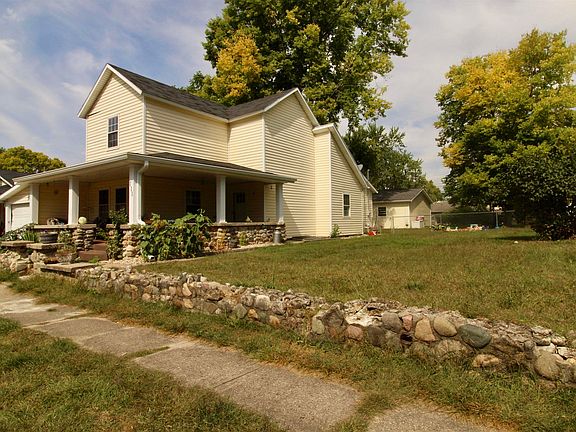 4 Bedrooms, 2 Baths in Mississinewa School District. Spacious living room opens up to large eat-in kitchen, with appliances that remain. 2 bedrooms on main level with full bath and laundry. Upstairs features another large full bath and 2 more bedrooms. Enjoy the large front covered porch or a fire in the back fenced-in yard! Plenty of storage space between the 1 car attached garage and 2 car detached garage. Majority of updates on the home were completed in 2021, some fresh paint has been done since then. Home is being sold as is.