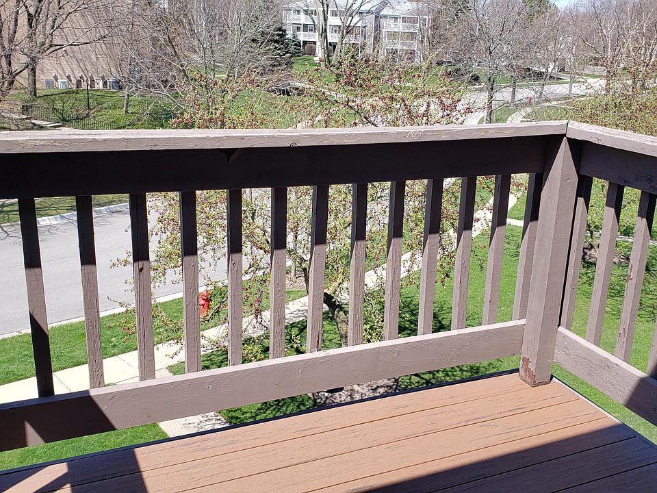 Located in a beautiful quiet residential family neighborhood on East Winchester Rd. 1 block off Rte. 21/Milwaukee Ave. down the street from Metra station and downtown Libertyville. A 3 minute walk to trains, bars, shops, restaurants, library, etc and just up the road from Des Plaines River bike trail path (and Independence Grove Forest Preserve ) and Lake Minear. Truly a GREAT LOCATION Large open Living room has glass sliding doors to a private Balcony deck facing north. Separate Dining room(opens to living room) is great for parties or workout space. Ceramic tile flooring throughout kitchen and dining rooms. The spacious Master bedroom has own separate bathroom with shower. Second bedroom also great for office. Nice large main bath. Laundry facilities and separate utility room in YOUR unit. New hardwood floor in Living room, and two bedrooms. Ample closet space throughout. About 936 sq. ft. Beautifully landscaped property and trees. Two designated parking spaces. Owner pays for water, trash and sewer. Tenant is responsible for electricity.