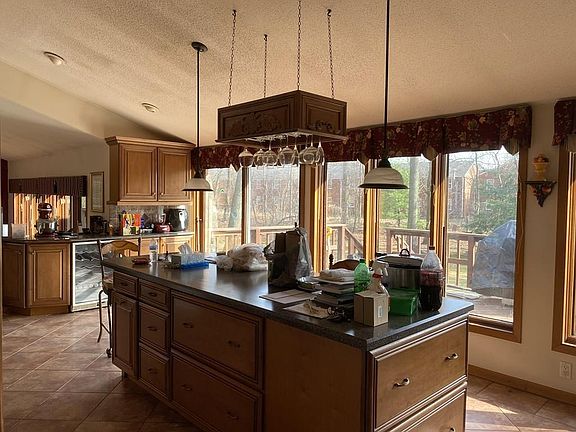 - Kit Dscrp: Countertops - Stone/Granite/Solid, Cabinets - Upgraded, Kitchen Island, Open Floor Plan, Flooring - Laminate, Countertops - Upgraded, Balcony / Deck, Wine Chiller, Lighting - Pendant