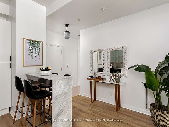 Main floor accessClear south exposureQuiet side streetCn tower viewsRoomy private terraceWork spaceEnclosed bedroom