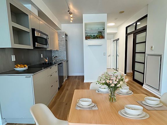 Cn tower viewsSouth-facing exposureModern kitchenStainless steel appliancesPrivate open balconyUnobstructed cn tower viewsEnsuite laundry