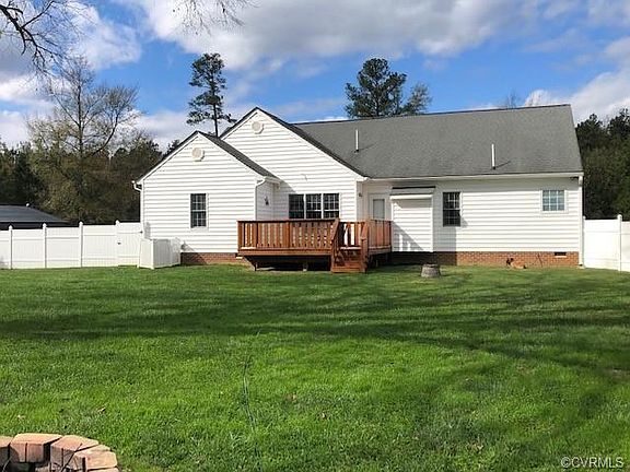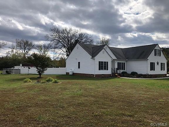 Beautiful, spacious home on 8.45 acres offers a rural setting but close to conveniences. Nice back yard for enjoying- such as sitting around the fire pit or in season swimming in the pool. New deck, nice white vinyl fencing around most of side yard and wire fencing/pasture for animals. County sq ftg is incorrect. Appraisal confirms 2344 sf. 3 bedrms, 2 1/2 baths on first floor. Bonus Room above garage is currently used as a bedroom. Lots of attic storage off bonus room. 2 car garage is finished,Master has 2 walkin closets, huge bathrm w/sep shower,jetted tub,dbl vanity. Hardwood floors and tile mostly on first floor. 12x20 shed has electric and another shed is 12x24. Water softener system, 2 car Carport,Living room has vaulted ceilings. Horses allowed! Located between Rt 360 and 301. close to I-95 and 295. Come settle in before the Holidays!
