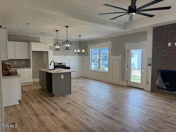 Gorgeous, one level living, 3 bedroom/2 bath home conveniently located in the brand new Fishery Village Subdivision in Erwin. The open concept showcases a large living room with tray ceilings and a floor to ceiling shiplap gas fireplace. The kitchen is every chef's dream with White Shaker cabinetry (soft close doors and drawers), quartz countertops, stainless steel appliances, tiled backsplash and island. The master ensuite includes and oversized walk in closet with custom shelving and 5' stand up shower with seat. There are 2 additional bedrooms, each with ample closet space and another full bathroom. The laundry room, dining room and 2 car garage complete the home. Flooring is LVP throughout (NO carpet!). Relax in the evenings on the covered back patio. Fishery Village is located conveniently in the heart of Erwin. Taxes not yet assessed. Buyer. All information herein deemed reliable.