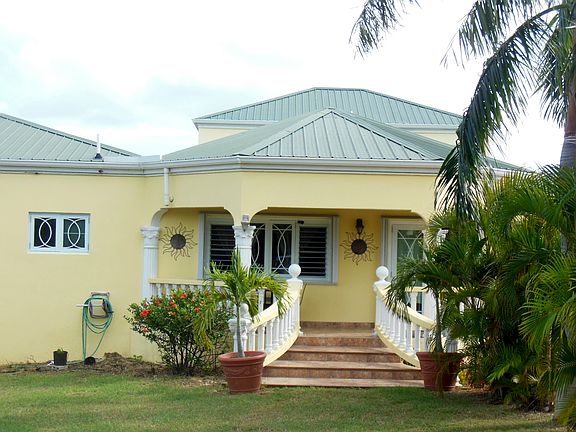 Great value price for this perfect home. Well suited for a growing family with added 2 bedroom guest quarters for rental income or extended family. This open floor plan living offers cathedral ceilings, cook's kitchen, lots of architectural details, garage, great yard, 56,000 gallon cistern, generator, and so much more. Master suite has central AC. Solid concrete construction, ceramic tile throughout, top of the line details, this home offers a strong punch for the price.