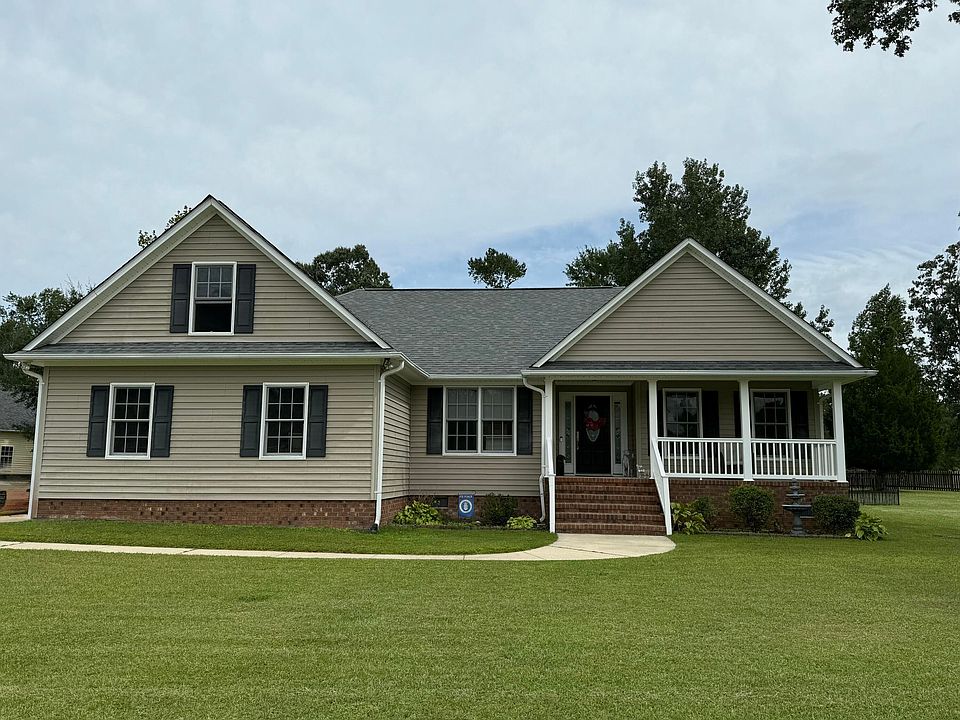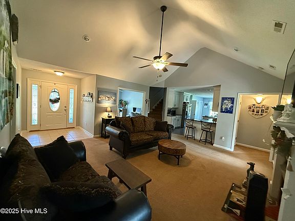 This beautiful home offers just under 2,100 sq. ft. of living space, set on a generous 1.27-acre lot. The comfortable split floor plan places all bedrooms on the main level, including a spacious primary suite with a walk-in closet featuring custom shelving and an en suite bathroom. Upstairs, you'll find a large bonus room perfect for a playroom, office, or additional living space. The eat-in kitchen boasts stainless steel appliances, a roomy walk-in pantry with built-in shelving, and a breakfast bar for two. A light-filled den on the main level offers flexibility as a home office or additional seating area off the living room. Additional features include a side-loading two-car garage with storage shelving. Conveniently located just 15 minutes from downtown New Bern and MCAS Cherry Point. * New roof on 2024