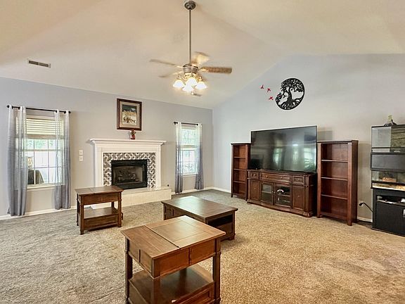 Welcome to a fantastic value in the highly sought-after Crowfield subdivision. This stunning single-story home is easy on the knees and impresses from the moment you step into the beautiful hardwood foyer. The open-concept family room is a highlight of the property, featuring a custom-made raised hearth gas log fireplace and soaring 9-foot ceilings that create a sense of grandeur. The master bedroom and family room boast cathedral ceilings, adding to the overall sense of luxury.The three secondary bedrooms have all been freshly painted and beautiful new LVP floors installed. The he family room seamlessly transitions into the spacious kitchen and dining area. Engineered hardwood floors throughout the hallway, foyer, kitchen, and dining room make for easy maintenance and add warmth.The luxurious master suite is cleverly positioned away from the other three bedrooms, ensuring ultimate relaxation and tranquility. Its bathroom includes a garden tub, walk-in shower, separate water closet, linen closet, and dual vanities with marble countertops. Arched windows in the master bedroom allow for easy decorating and abundant natural light. The hallway to the bedrooms boasts designer columns, recessed lights, and beautiful hardwood floors. Both additional bathrooms have ceramic tile floors. The garage features a recessed workbench, four extra electrical outlets, and ample storage. The custom kitchen is stunning, showcasing Corian countertops, maple cabinets, and almost new stainless-steel appliances that come with the property. Outside, the fenced backyard offers a privacy fence and a charming playhouse included with the property. The house has leaf filter installed with a warranty. A spacious 16x12 screened porch is ideal for enjoying spring and summer nights. The two-car garage, complete with shelves and a large sink, provides plenty of room for outdoor gear and activities.
