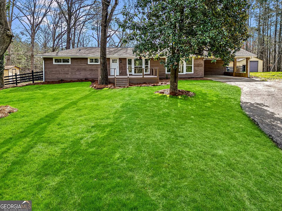Completely renovated home - Just like Brand NEW!! This 3 Bedroom and 2 full bathroom Ranch sits on 6.28 wooded acres. This home features: NEW 4-ton Heat Pump with all new duct work and registers - NEW 50-year Architectural Shingles - NEW Vinyl Windows - NEW 50-gallon Water Heater - NEW Interior doors and hardware - NEW Exterior Doors and Hardware - NEW paint on Interior and Exterior - NEW Granite Countertops throughout - NEW Kitchen Cabinets - NEW Kitchen Appliances that include Dishwasher, Range/Oven and Microwave - NEW Faucets and Vanities throughout - NEW LVP Flooring - NEW Carpet in Bedrooms - NEW Tile in Bathroom - NEW Plumbing supply lines - NEW 200 AMP Panel including NEW Breakers, Receptables and Switches - Laundry Room and a Sun Room/ Breakfast Area. This property also includes a Workshop/Garage 20x30, Barn/Stable 32x48, Utility Building 10x12 and Utility Building 12x12. Take a look at this little piece of Heaven - it offers a sense of peace and serenity away from the busy city life.