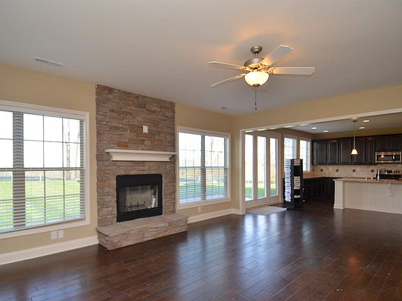 This wonderfully appointed Cavanaugh II Expanded model by Ball Homes has something for everyone. As you walk in the front door you notice the dark hand scraped wood flooring which flows through the entire first floor. A home office with french glass doors make way to a large dining room adjacent to a butlers pantry with granite counter tops. The oversized kitchen also boasts granite tops, stainless appliances, a large island with sink and countertop space which wraps around a set of windows at the rear of the home that overlook beautiful Scott County. The open concept kitchen and den features a dry stack stone fireplace. Upstairs you will find an additional den area, second floor laundry and four bedrooms. The master features a large ensuite bathroom with fully tiled walk in shower, free floating tub and dual vanities with granite tops as well as a huge walk in closet. Call today for your private showing!