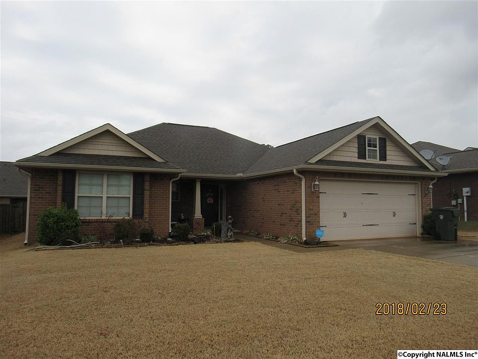 STUNNING MOVE-IN READY FULL BRICK HOME WITH ALL THE UPGRADES. LOCATED IN MADISON WITH MADISON CITY SCHOOLS, AND BUS SERVICE. THIS HOME HAS HARDWOOD STYLE TILE FLOORS IN THE LIVING ROOM AND MASTER BEDROOM. GRANITE COUNTER-TOPS IN THE KITCHEN, RECESSED LIGHTS, FRESH PAINT, ROUNDED SHEETROCK CORNERS, ARCHED CASED OPENINGS, AND STAINLESS STEEL APPLIANCES COMPLETE THIS LOVELY HOME. MASTER BATH HAS DOUBLE VANITIES, TILE FLOOR, LARGE TUB AND SEPARATE SHOWER. OUTSIDE YOU WILL FIND A FENCED BACKYARD, COVERED PORCH, AND NICE LANDSCAPING.