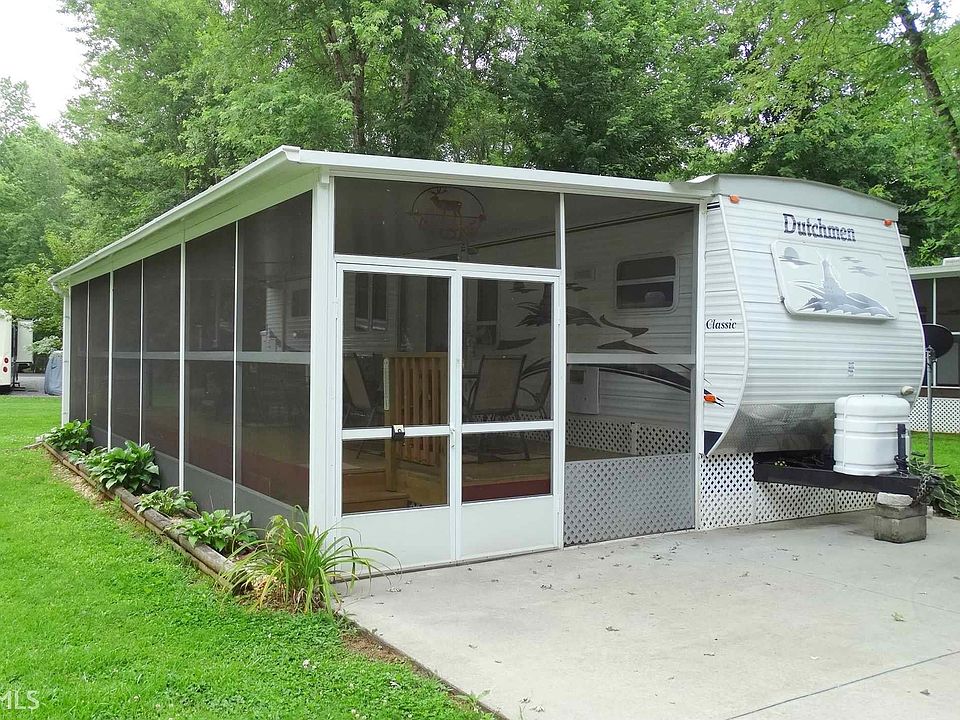 Come enjoy the North Georgia mountains with an affordable getaway! Close to Helen, Sautee, Unicoi and wineries! Located in the Paradise Valley RV Resort with gated security, pool, clubhouse and lots of activities. 36 ft 2005 Dutchman camper with roof over and large screened porch on a good sized lot with plenty of room to add a cabin if desired. Comes fully furnished and ready to go! Gated community, must be accompanied by agent to view.