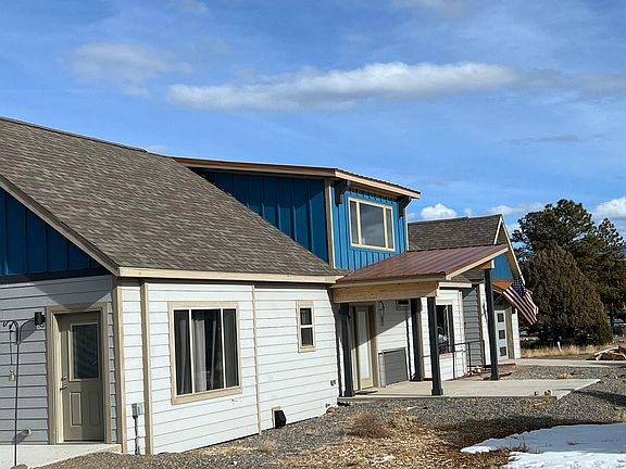 Fairly new home built in 2020 nestled into 1+ acres in Loghill Village. South facing and situated on a cul-de-sac off of Ponderosa Drive. 3bedroom, 2 full baths and 2 1/2 bath with approximately 1992 sq. ft. There is also an enclosed area between the garage and home that could be a perfect office, reading room, art room, etc. Stunning views of the San Juan Mountains from ground level and huge from the second story. Nicely laid out kitchen including over-sized refrigerator, dishwasher, oven and stovetop. Generous space for your storage in the pantry. Dining area is adjacent to the kitchen with ample space for nice dining table and chairs. The living room includes a gas driven fireplace for heat as well as ambience. There are 2 primary suites on the main level with an extra guest bathroom. The main level bedrooms are nicely sized and both have full baths and walk in closets. They both also have separate egress other than the front door. Upstairs is an open bedroom with huge views. There is a 1/4 bath up there as well. The square footage of 1992 does NOT include the 2unfinished sides. These 2 areas equal 541 square feet and it will not take much to finish these areas off. A single care garage adorns the eastside of the home.