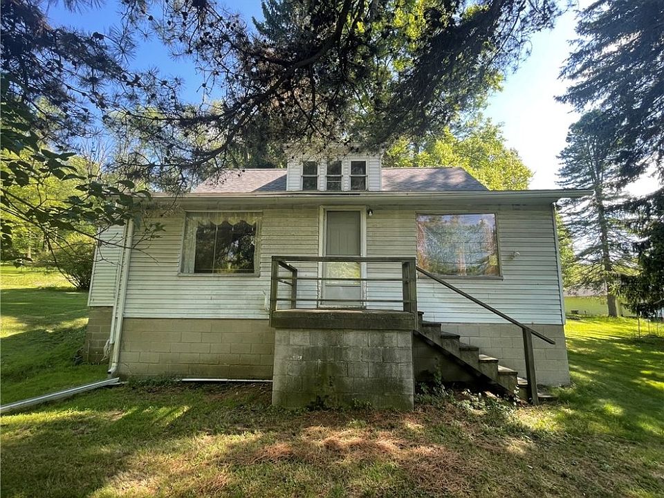Calling all nature & garden lovers! Looking for a home on acreage with privacy, well look no further! The possibilities are endless at 111 Forward Lane. This cozy 2-bedroom, 1 bath cape cod home sits on 3 private acres while being just minutes from downtown Evan’s City. You will have the ability to put your own stamp on this home and update it into exactly what you want. Original hardwood floors on upper level, beadboard, brick and more! Enjoy the nature and privacy. You’ll have your choice of many gardening spots along with existing large blueberry bush, wisteria, garlic, asparagus as well as chestnut, walnut, apple and pear trees! Shed with electric and a carport. Seneca Valley School District.