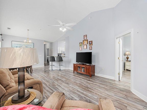 This charming 3 bedroom, 2 bath condo features a screened-in porch, vaulted ceilings, and is conveniently located near the airport, shopping centers, and the beach. You'll love the privacy of being in an end unit on the third story with plenty of natural light pouring in through the windows. The serene community park includes picnic tables with covered seating and a charcoal grill. Don't miss out on this amazing opportunity to own a beautiful and spacious condo in an unbeatable location. Schedule your showing today before it's gone!
