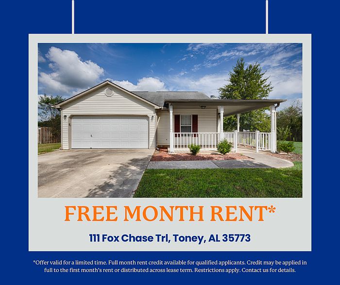 111 Fox Chase Trl Turn-Key Charmer on Nearly Half an Acre! Welcome to this beautifully maintained home offering the space, versatility, and modern updates you've been looking for. Step inside to discover updated flooring throughout, light-filled rooms, and living room with cathedral ceiling, centered around a cozy fireplaceperfect for both relaxing and entertaining. Enjoy morning coffee on the inviting covered front porch, or cook up delicious meals in the well-equipped kitchen, complete with major appliances. The primary bedroom features convenient access to a fully bath, while the modern grey paint and abundant natural light create a neutral, stylish backdrop ready for your personal touch. Step outside to a generous patio and a large yardideal for hosting, play, or simply soaking up the sun. Ready to welcome you! Schedule your showing today before it's gone! BEWARE OF SCAMMERS. We DO NOT advertise on Facebook Marketplace or Craigslist, and we will NEVER ask you to wire money or pay in cash. The price listed is based on a 12-month lease for an approved applicant. Prices and special offers are valid for new residents only. All leasing information is believed to be accurate; however, prices and special offers may change without notice and are not guaranteed until the application has been approved. Additional fees may apply, including a lease administration fee, damage waiver fee, and pet fees (where applicable). This property allows self guided viewing without an appointment. Contact for details.