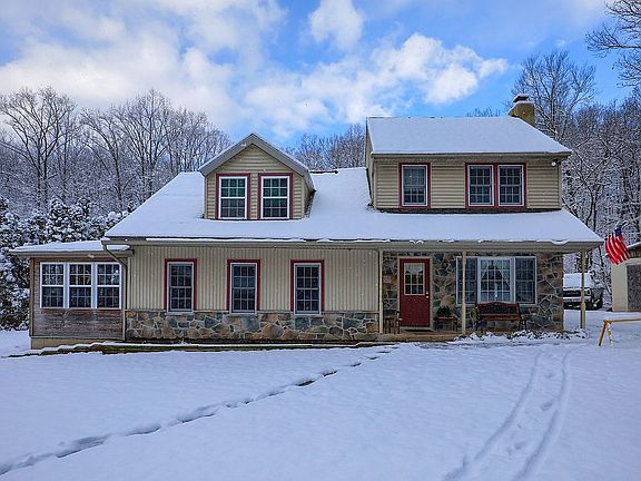Beautiful home nestled on 1.8 acres just 6 miles North of Lititz. A panoramic wooded view of the outdoors from every window. 3 Bedrooms, 2 Bathrooms, a sunroom, living room with fireplace, kitchen with new linoleum floor beside second living room with woodstove. Backyard with 24x12 shed. Also a chicken house. Central A/C and propane heat. A must see! Call Neil and Amy Adams. Warwick School District.
