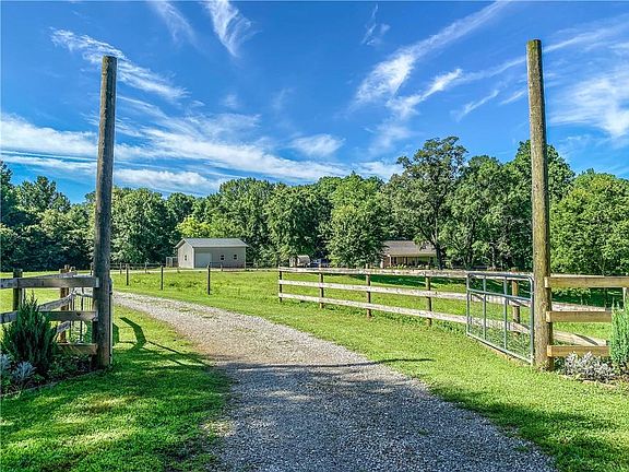 This newly constructed home with 11.8 acre peaceful farm setting and broad creek bordering the property is the dream home setting you've been looking for. A winding driveway welcomes you home with pathway leading to your covered front porch and into an inviting living area with welcoming feel. This newly constructed home has an open and spacious layout with neutral colors, and freshness of abundant daylight throughout. The spacious living area features hardwood floors and a gas log fireplace perfect for staying warm and cozy on those winter nights. Easily flow into the spacious kitchen featuring center island with bar seating, granite countertops, stainless appliances and dining area with convenient access to the spacious back deck overlooking scenic views of the back yard, an ideal space for relaxation. Your master bedroom is privately located at the back of the home with exterior access to the back deck and a spacious on suite bathroom featuring an oversized tiled shower. A hallway leads to two guest bedrooms, a full bathroom and laundry area. A second entryway on the driveway side of the home opens into a spacious mudroom providing a space for kids backpacks, work boots and storage needs. The lower level features a second living area, full bathroom and storage space. An ideal layout for when out of town guests visit or for use as a home office or playroom. This farm setting has shade trees and 7+/- fenced pastureland for equestrian and livestock use or enjoyment for outdoor enthusiasts who enjoy spotting wildlife including deer, wild turkeys and more. A level walk to the broad creek allows for possibility of a campsite location, fishing hole and swimming spot during the hot summer months. Sit back with a glass of sweet tea and enjoy scenic views of your private backyard from the partially covered back deck. The 24'x30' metal utility workshop with 12' high clearance features a concrete floor, 220 electrical service and two roll up doors; one measuring 10'x12' and the other 9'x8'. A full camper hookup is located between the house and shop providing 30 amp electric service as well as water and sewer hookup. Additional home features include exterior video surveillance system, whole house water filtration system, variable speed gas furnace, four exterior frost-free faucets and a heated and cooled dog kennel. An amazing opportunity awaits to enjoy your dream home and setting conveniently nestled in the town of Walhalla; just an hour drive to Greenville or Asheville and centrally located between Atlanta and Charlotte.