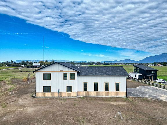 Big, bright, and beautiful perfectly describes this newly built Barndominium on 2 acres. It features a 1,200 sq. ft. heated shop with 11' wide, 14' high doors, and 16' ceilings—ideal for all your toys and storage needs. The 3,200 sq. ft. living space includes 4 bedrooms, 2 full and 1 3/4 bathrooms, a spacious mud/laundry room, an open floor plan with vaulted ceilings, a grand fireplace for cozy winter nights, a stunning kitchen with granite countertops, stainless steel appliances, and a hidden walk-in pantry with a sink. Large windows throughout the home and shop fill the space with natural light and showcase breathtaking mountain views, including Glacier National Park. The covered outdoor living area overlooks farmland and offers stunning views of Glacier Park. The relaxed CCRs allow for hoofed animals, chickens, small guest units, and short-term rentals. There's even space for your RV. Landscaping will include a seeded lawn, shrubs, trees along the border, and fencing on two sides. The spacious master suite boasts a luxurious bathroom with a freestanding tub inside the shower and a massive walk-in closet. The main level features a bedroom and a 3/4 bathroom, ideal for guests or extended family. Upstairs, you'll find two more bedrooms, a large full bathroom, and a loft that's perfect for a study area. This home's location offers convenient access to shopping, schools, restaurants, Glacier National Park, Flathead River, and Flathead Lake. Plus, Whitefish Mountain is less than an hour away, perfect for year-round activities.