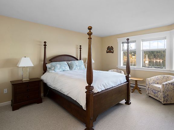 Over the water balcony and forever views. Fully furnished home with brand new master bath. Electric fireplace in beautiful living room. Open architecture, two- level, solid wood floors leading to 20 foot-balcony on first floor. Large culinary kitchen fully equipped. Second floor w/ master bedroom and bath with sunken tub and shower. Guest room with private bath plus den with attached balcony. Attached garage for one car plus one guest parking space. Quiet and private yet a short walk to town, Farmers Market and shops. Owner pays for water and garbage. Renter pays for electric, cable and wifi.