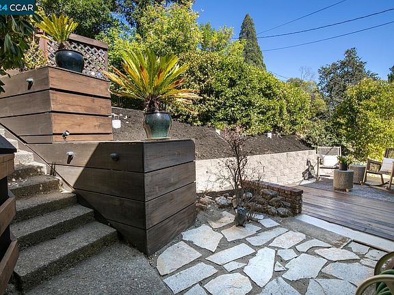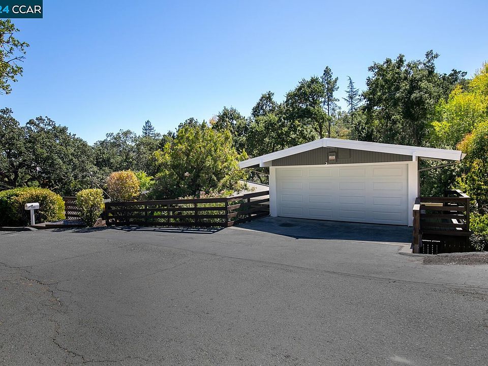 This secluded home, classic and understated, is situated on a third of an acre in a sylvan setting with a seasonal creek. It can be enjoyed year round from a deck that spans the length of the house. Vaulted ceilings in the living room together with sliders to the deck create an open feeling with lots of natural light, giving the home a secluded, wooded feel in spite of being just minutes away from downtown Walnut Creek, BART and freeways in all directions. There are two primary suites on opposite ends of the home. One is just off of a bonus room which can extend the primary space to a full suite, perfect for extended family stays. The original ensuite bedroom has a separate sitting area as well as an updated bathroom. Sliding glass doors provide access to the deck. With a total of 3 bedrooms, 3 bathrooms and 2055 square feet, it is large enough to accommodate a variety of home needs. In addition to a work bench in the 2-car garage, there is 632 square feet of workshop and utility space on a lower level with access via the back deck. A trailhead at the end of the street provides access to miles of trails throughout the Acalanes and Briones open spaces.
