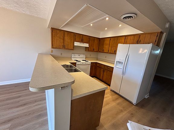 2 BR, 1.5 bath, ONE CAR garage, which is oversized. New LVP flooring in entire unit. LR and DR are good size with additional bar seating. Refurbished bath and 1/2 bath. New lighting. 1120 SF. Gas heat. Deck on back of house looks into wooded area with a small creek. NO ANIMALS. Must use Zillow application before viewing the property.
