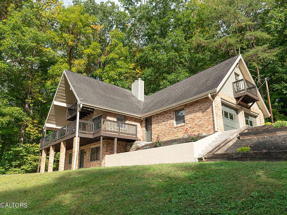 SELLERS WILL ENTERTAIN CLOSING COSTS OR INTEREST RATE BUY DOWN, WITH ACCEPTABLE OFFER. 111 Golf Hill Lane is a stunning brick home overlooking the LaFollette Country Club. As you pull into the large driveway, you will find a 2-car garage and professional landscaping. The front porch is covered with composite decking and fantastic views. As you step inside, you will find a semi-open concept. The living area has lots of natural light and a fireplace. The dining area is adjacent to the kitchen, with granite countertops and new stainless-steel appliances. There is a large bedroom on the main level with a walk-in closet. There is a hall bath on the main level as well. Upstairs you will find a bonus room/bedroom, two other bedrooms and a full bath. All three bedrooms upstairs have exterior doors that lead to walk out balconies to take advantage of the views. In the basement, there is another fireplace in the living room, a rec room area and a sleeping room. There's a sleeping area, a full bath, laundry, and another full-size kitchen. This home offers lots of space and is great for entertaining. The rear of the home has a paver patio and a fire pit. The location is great - only a few minutes to I-75, Norris Lake, shopping, parks and more. LaFollette Country Club is a 9-hole golf course, with a pool, and club house. No HOA and no required fees unless you decide to join. Schedule a private tour! owner/agent. As with any real estate transaction, buyer to verify all information including, but not limited to, square footage, restrictions, acreage, etc.