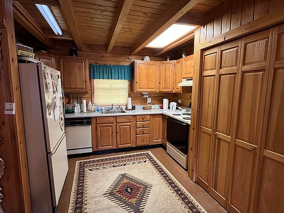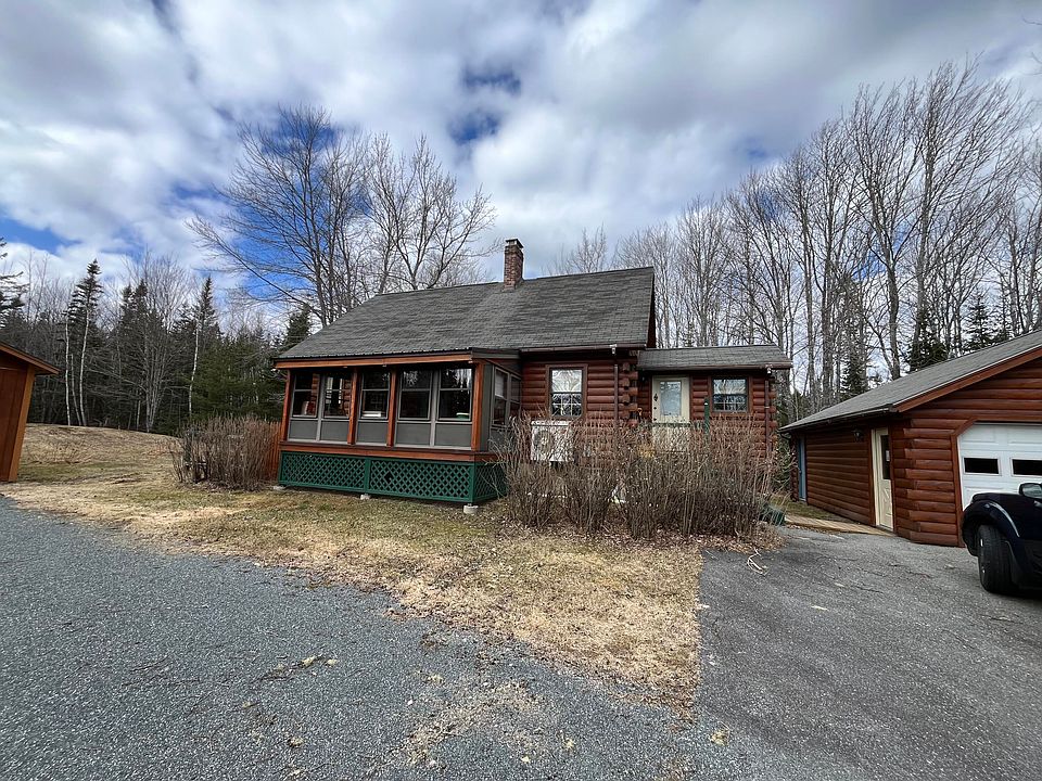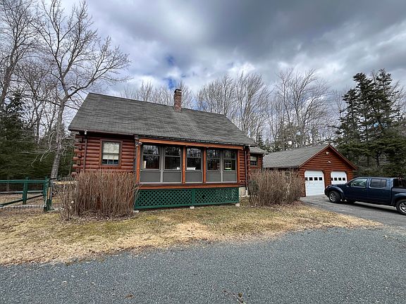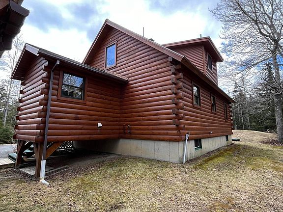 Here is your chance to own a log cabin in the woods. 1 floor living. Sit around the woodstove in the winter + enjoy the air conditioning from the heat pump in the summer. 2 garages with 3 spaces for all of your ''toys''. House comes furnished. Public boat ramp is approx 2 miles down the street.