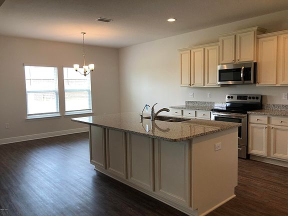 This Victoria plan is ready to move in. You will find vinyl plank flooring in the foyer and common and wet areas of the home. Just off the foyer, there is a hallway that leads to three bedrooms that have plush carpet, a hall bath and laundry room. The living room is the central point of this floor plan and is open to a large eat-in kitchen with granite countertops and an under-mount stainless steel sink in the center island and a walk-in pantry. Just off the living room you will find a master suite with carpet.