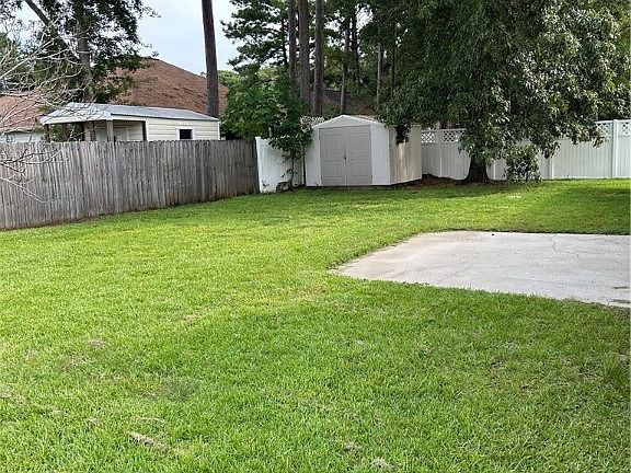 Welcome Home! This gorgeous single-family home offers 4 bedrooms with 2 full bathrooms, and a 2-car garage. Stunning hardwood floors throughout the home except for the bedrooms which have updated carpet. Open kitchen with upgraded stainless appliances and pantry. Wonderful, sodded yard with the back fenced to provide privacy, includes a patio and a shed for storing your garden tools and cookout needs. The entire home has been freshly painted. A single level ranch style home with an open floor concept, high ceilings. This home is perfect for relaxing or entertaining. Spacious primary bedroom, trey ceiling, two large walk-in closets, ensuite with a jacuzzi tub, separate shower, and private toilette. Cozy fireplace in the living room with large windows and custom blinds. Upgraded HVAC system just 2 years old. This lovely home is move in ready and waiting for you to start making memories!
