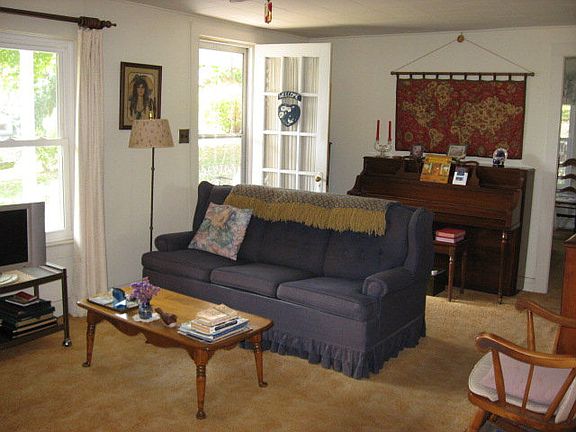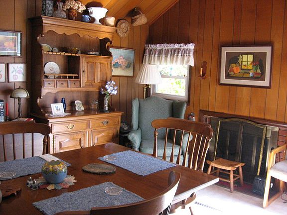 Charming and cozy older cottage tucked among tall trees with terrific view of mountains. Home has been updated with wood fireplace in kit/dining. New windows and roof. Carrier oil furnace. Ideal cottage with cool mountain breezes. 2BR/1Bath on main. Large loft for overflow guests. Full basement has dirt floors. Large front yard with shrubbery and flowers. This home has charm and convenience!!!