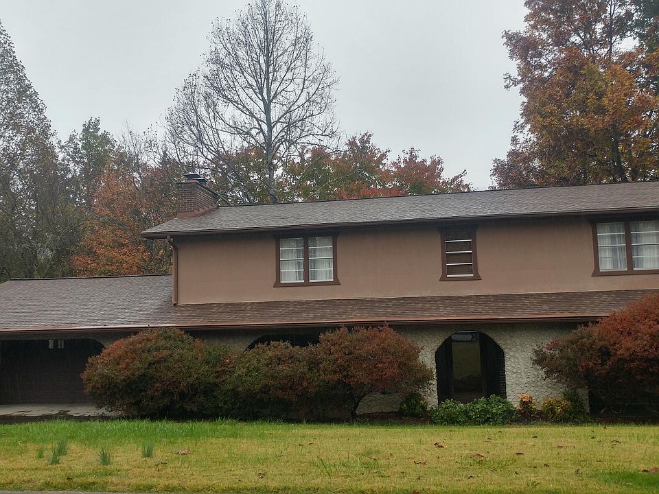 Main level features Family room gas gas logs in fireplace w/large windows. Updated beautiful eat in kitchen w/granite tops and includes all appliances w/door to deck overlooking wooded privacy. Formal dining room. Large living room. 1/2 bath laundry includes washer & dryer and 2 oversized 2 car garage. Upstairs has 4 bedrooms including owners suite w/bathroom and walk in closet. Hallway bathroom has tub/shower. Basement has huge rec room w/2nd fireplace and play/craft room and unfinished room w/door to patio.