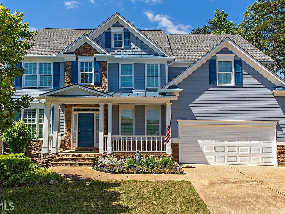 Light-filled Craftsman home with welcoming front porch. Huge Family Room w/stone fireplace is open to chef's kitchen w/granite counters, oversized island, NEW Samsung range & microwave. Office w/ French doors offers great flex space. Large Master Suite with upgraded tile & cabinets and His/Hers closets. Upstairs Hall Bath w/ double vanity. New Carpet! Full unfinished basement is stubbed. Large deck overlooks private, fenced backyard. Architectural Roof is 2 yrs new! Freshly painted exterior! Great Amenities! Ask about lender paid closing costs! Close to Shopping/575.