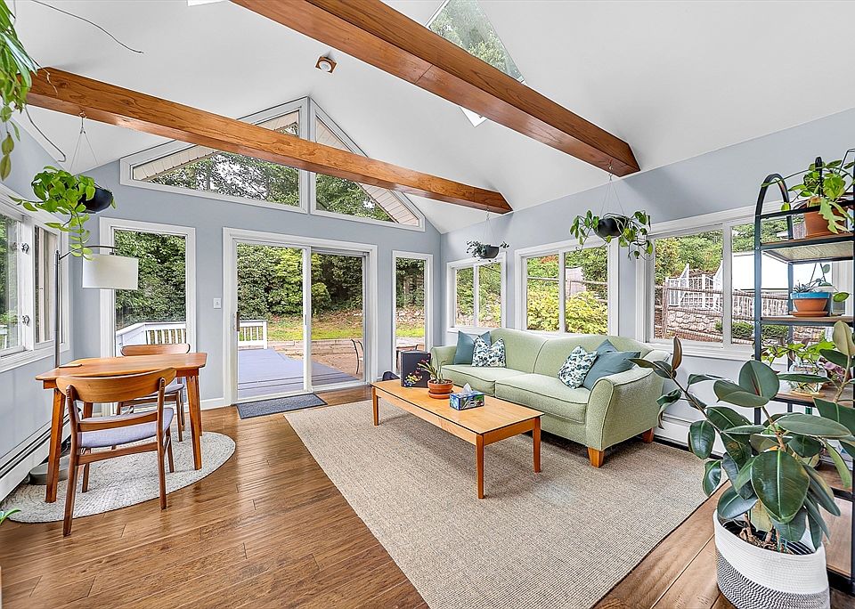Sunny and inviting, this 4-bed, 1.5-bath colonial is nestled in the sought-after Greenlodge neighborhood. Inside, enjoy gleaming hardwood floors, fresh updates, and a great layout for entertaining. The living room features a bay window and fireplace, leading to a stylish eat-in kitchen with granite counters and stainless steel appliances. A bright sunroom with a cathedral ceiling opens to the deck and patio—perfect for indoor-outdoor gatherings. A mudroom and half bath complete the first floor. Upstairs offers four spacious bedrooms with generous closets and a full bath. The finished basement adds flexible space for a playroom, office, gym, or family room. There is also a thriving pollinator garden right at the entrance, newly upgraded 200-amp electric panel and and a Level 2 EV charger. Located close to schools, major routes, the train, and great spots like Dedham Square and Legacy Place, this home blends convenience with classic New England charm.