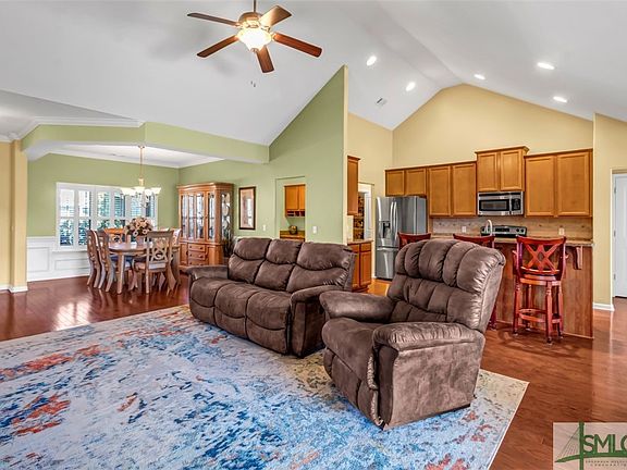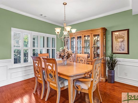 Discover unparalleled sophistication at 111 Grimsby Road in the Savannah Highlands community. This stunning single-story residence features 4 bedrooms, 3 baths, and an open floor plan with hardwood floors, wainscotting, and crown molding throughout. The living room features vaulted ceilings & double doors that take you onto the screened in porch, perfect for entertaining. The kitchen is a chef's dream, boasting granite countertops, breakfast bar, stainless appliances & ample cabinet space. The primary suite offers trey ceilings and an ensuite with double vanities, a separate shower, jetted tub & a walk-in closet that leads to the laundry room. Outside, enjoy serene lagoon views from the screened porch or grill out on the extended patio. Amenities include a swimming pool, playground & tennis courts. Close to I95/I16, shopping, restaurants & entertainment.