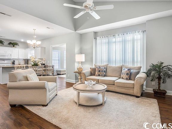 UPDATED! UPDATED! UPDATED! As you walk through the front door you will notice the LVP that runs all throughout the main living area with 5 1/4 inch base boards. The first floor offers 9 ft ceilings with a vaulted ceiling in the living room. You will also notice the gas log fireplace with a stone surround and accompanying nook for your tv cabinet. The kitchen features granite countertops, white subway tile backsplash, matching white appliances, and a cabinet to disguise your trash bins. All drawers and hinges in the house are soft close. All plumbing fixtures are an elegant brushed nickel. All ceilings are smooth. Just off the dining room is a sun room with sliders that lead to the exterior patio. The sun room has a built in wine cooler encased with a granite countertop; perfect for organizing your favorite beverages. Off the kitchen is the half bath and laundry room. The large master bedroom offers a walk in closet and en-suite master bathroom. The master bathroom features a double sink vanity, white subway tile soaker tub/shower combo, and a handheld shower head. Want to adjust the lighting? No worries, this home features dimmer switches in all rooms on the first floor. The large second and third bedrooms are located upstairs. The bedrooms can access the bathroom through a split entry which offers convenience and privacy for your guests. The guest bathroom features a handheld shower head and double sink vanity. Outside you will notice a patio seating area and enclosure by the HVAC unit. A great option to store items outside. When you are not at the beach you can enjoy the community’s clubhouse and pool. Arcadian Lakes is convenient to all of the shopping, restaurants, and entertainment you could ever need. This community is East of HWY 17, allows GOLF CARTS, and is just a mile to the beach. HVAC, Water Heater, Windows, and appliances all 4 years old. Roof to be replaced this year. Upstairs bedroom furniture is available for purchase. Here is your chance to own an updated, move in ready home that is close to the beach. Call today to schedule your showing!