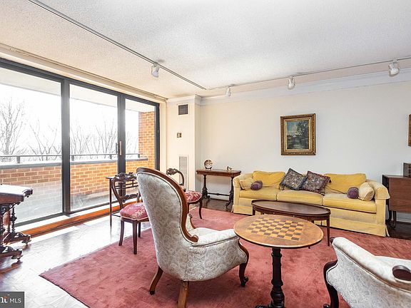 Your next home could be this enormous sun-filled condominium in sought after Harper House. This is one of the largest units in the building. Enjoy the southern and western exposures for maximum sunlight and nighttime cityscape views! As you enter the unit, you will be welcomed in through a gracious hallway with custom built ins. The hall opens into the expansive living room with a dining room alcove. The updated kitchen has space for a small table and endless cabinets for storage. You will also appreciate the back door entry from the kitchen for grocery delivery and trash removal. Parquet floors are throughout. The living room and one bedroom (or office) both open through sliding doors onto the L-shaped balcony. A hall bath (with adjacent laundry) is convenient for guests. The primary bedroom is flooded with light and boasts both a huge walk-in closet and another large closet. You will love the carefree condo living at Harper House where all basic utilities and two deeded garage spaces are included in the monthly fee. Residents appreciate the 24-hour front desk coverage, the door attendant who can assist with packages, and access to pools and tennis/pickle ball courts. Steps away is the newly rejuvenated Cross Keys Village where you can enjoy many new restaurants and shops.