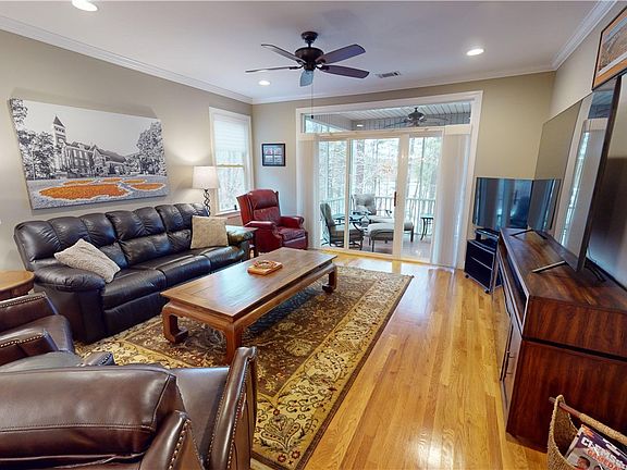 Rare opportunity to own in sought-after Hammock Bay, a Lake Hartwell waterfront community with 10 townhomes and individual boat slips, only minutes from downtown Clemson and Death Valley. Offered as fully turn-key: all furniture, accessories and contents convey with the sale of this 3 bed/2.5 bath home. The main level owner’s suite offers beautiful lake views. The second and third bedrooms are located on the lower level along with flex space currently being used as a fourth bedroom. Two large living areas, a screened porch, plus a patio make lakeside living and entertaining easy. The home has been well maintained and offers plenty of storage in the 2-car garage, mud room and storage room. Roof replaced in 2018. Upgrades by these owners: downstairs flooring, HVAC units, painting throughout, spray foam insulation; improved boat lift (included with sale) and Smart home systems. Take advantage of owning a lake property tucked away on a quiet spot while convenient to everything Clemson has to offer.