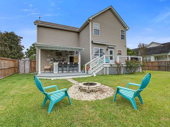 Welcome to this charming three bedroom, two and half bathroom home nestled on a cul-de-sac in the tranquil neighborhood of Hanahan Plantation. You are greeted at the front of the house by a delightful front porch, ideal for enjoying your morning coffee. This property boasts custom upgrades such as a dedicated workout area, allowing you to stay active and maintain a healthy lifestyle without ever leaving the comfort of your own home. The backyard is the perfect place for entertaining. The spacious fenced in yard features a custom fire pit and a tiki bar, providing an inviting atmosphere for hosting gatherings and creating lasting memories. Additionally, this property offers access to the amenity pool, providing a refreshing retreat for those hot summer days. Come see it today.