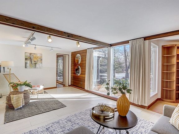 SPECTACULAR MID-CENTURY MODERN HOME ON KENNEDY'S POND! This original TECHBUILT home is designed by FAMED ARCHITECT CARL KOCH & offers a unique blend of retro charm & contemporary flair. Truly a ONE-OF-A-KIND living experience. The main living level offers FLOOR TO CEILING WINDOWS that fill the rooms with natural light & allows one to enjoy UNDISTURBED WOODLAND & POND VIEWS. Original wood details throughout the space create a warm & cozy feel. The updated kitchen is bright with a central skylight & stainless steel appliances. A spacious dining room connects directly to the SCREEN PORCH & creates an entertainment area that is truly perfect. Experience a CUSTOM LIBRARY - WALLS OF BOOKCASES fit for a scholar. The second floor hosts two cozy bedrooms plus a comfortable primary bedroom with large windows showcasing the traditional attributes of a Techbuilt home. Thoreau Hills is a significant & picturesque neighborhood in the West End that is close to every amenity one could hope for!!