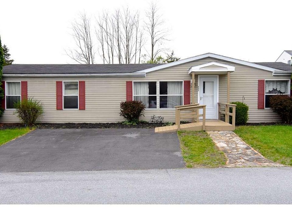 Wheelchair-accessible, manufactured home in the ever-popular Heister's Creek subdivision in Exeter Township and the Exeter School District. This completely updated, one-story home has a wheelchair accessible ramp leading up to the front door. The entire interior has been recently painted in earth tones and neutral colors. The main living room and adjoining family rooms are large enough to accommodate a formal LR and DR suit with recently added Pergo hardwood-look laminate flooring. The eat-in kitchen is bright and spacious, and the cabinetry and countertops have been conveniently lowered for a wheelchair-bound individual. Cabinetry is oak & the countertops are Corian w/a moulded sink. All appliances remain, with newly installed vinyl flooring. All doorways are wide enough for wheelchair entry. The master bedroom has its own private full bath & walk-in closet. There are two additional bedrooms that are a very nice size w/neutral wall-to-wall carpeting and share a recently remodeled second full bath. There is a brand new sliding glass door to the spacious rear pressure-treated deck and the storage shed does remain. The roof is only a few years old and the HVAC has been professionally maintained. This is easy, affordable one-floor living at its finest!