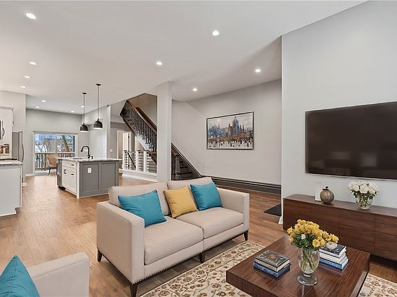 Efficiency meets comfort with dual furnaces and AC units, ensuring optimal climate control across all levels. The home boasts two laundry areas with brand new washer and dryer unit included. Neutral paint and durable floating wood floors create an elegant backdrop throughout.