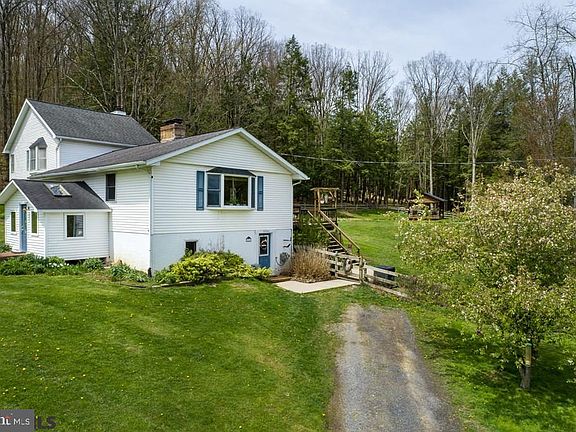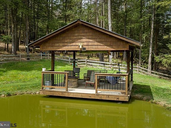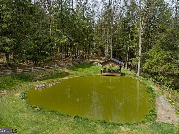 Enjoy country living on 11 acres with a beautiful pond, outdoor pavilion, mountain and valley views, fenced yard, raised garden beds and lots of privacy. This two story home is rich with charm and character and offers an open floor plan, spacious kitchen, large deck, first floor bedroom with full bath, laundry, and a living room with fireplace. Retrieve upstairs to a spacious owner's suite with views, walk in closet, skylights, and wood burning fireplace. There is also a light and bright owners bath with lovely claw foot tub. Bank barn and detached garage are as is with loads of potential.