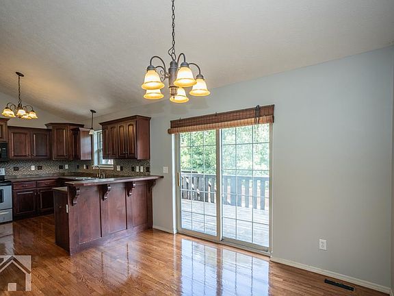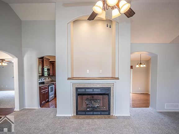 Elegant property with lots to offer. Built by LTD Construction. All new carpets & new paint throughout the house! Two new overhead garage doors. Extensive landscaping in front and back yard with in-ground sprinkler system for both. The spacious living room is vaulted and offers a bay window and natural gas fireplace with a tall TV niche. Vaulted kitchen has custom off-set cherry cabinets with tiled backsplash, wood floors, stainless steel appliances, closet pantry. The owner's suite has 2 large walk-in closets & attached bath with corner jetted tub, double vanity, & separate shower. Vaulted dining room exits to the freshly stained deck. Huge privacy fenced back yard that backs to woods. Split floor plan. Bull nosed corners. Some arched doorways. Available for showings on July 8th.