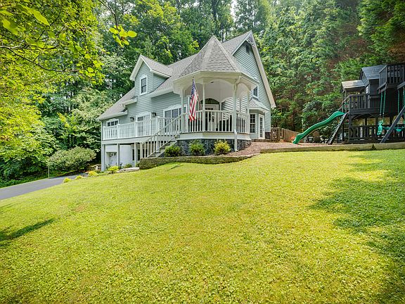Situated peacefully in a quiet cul-de-sac is this beautifully modernized Victorian home. Located in an idyllic area tucked just outside of the Elizabethton City limits in South Johnson City, the location alone is highly desirable. An aesthetic dream from beginning to end, this home has been renovated in most every corner. The bright, airy kitchen opens into the cozy living room that shares a double-sided fireplace with an expansive dining room. A separate laundry room and half bathroom are also found on this main level. Finishing out this first floor is the sprawling primary suite complete with trayed ceilings, gorgeously modern fireplace, and en suite primary bathroom with large walk-in closet. Upstairs, you will find two more large bedrooms, another full bathroom, and a hidden theater room! Downstairs, in the tastefully finished basement, the dazzling finishes continue. The 4th bedroom, 3rd full bathroom, large enviable pantry area, second den/workout room, storage area, family command center/mudroom, and garage are all found here. Outside, you can enjoy the peace of this DOUBLE lot (parcel ID 056J C 011.00/107 Hidden Valley is ALSO included) and the shade provided by the mature trees. There is just enough flat area to allow for the kids and pups to play while you watch from the fire pit area. Or choose to relax on the front or back decks or read a book from the unique Victorian style gazebo. This gem must be seen in person to truly appreciate how much it offers!