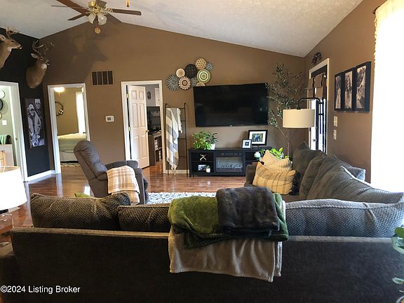 Check out this adorable meticulously well kept ranch home on a partially finished walkout basement. Grand open floor plan. Vaulted ceilings in the great room with hardwood flooring throughout. Enjoy the view from the full covered front deck. Large windows allow for amazing lighting. French doors off of the basement onto the covered patio. The basement is not finished, but very close. Already including a bedroom, full bathroom, laundry and 2 other rooms. FOUR bedroom potential! 24X40 detached garage. High speed internet available.