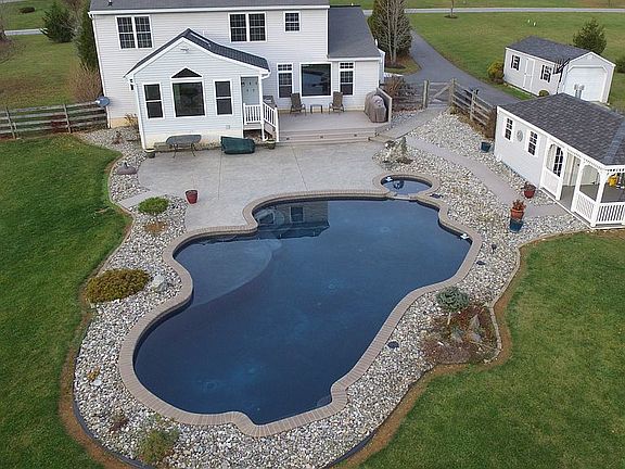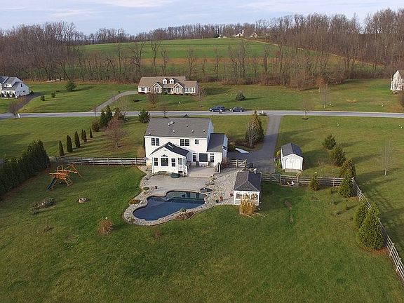 This stunning 14 year old home will wow you with the updates and the spectacular view! Owners have updated the kitchen with granite, lighting, stainless steel appliances and ceramic tile flooring. Brand new carpet in dining room, stairs, hallway and master bedroom. The new addition of the sunroom with a vaulted ceiling and powder room give a wonderful open space on the first floor. The family room boasts of new Brazilian Pecan hardwood flooring and gas fireplace. Large picture windows in the family room and sunroom allow you to overlook the 2 acre fenced back yard with an amazing in-ground pool. The 700 sq foot in-ground cement pool and built-in hot tub spa is a maintenance free salt water system that is heated. This pool has a unique 90 sq foot 'sunshelf', a shallow 18 inch deep area to play, hang out and gather. The pool is surrounded by a beautiful stamped concrete patio and pool house with gazbo that has electric. The 2nd floor of this home contains a large master bedroom with 2 walk in closets and master bathroom with double bowl sinks and soaking tub. 3 additional bedrooms complete the 2nd floor. This home is made for energy efficiency and to save you money. The home was built with 2X6 exterior walls, upgraded installation including walls, wrap and roof, high efficiency heater and hot water heater fueled by propane heat with owned tank. A full basement and 2 car garage, and a 1 car garage/shed add to this functional home. Detailed info sheet available from listing agent. Owner has pool uncovered for easy viewing, until open house date.